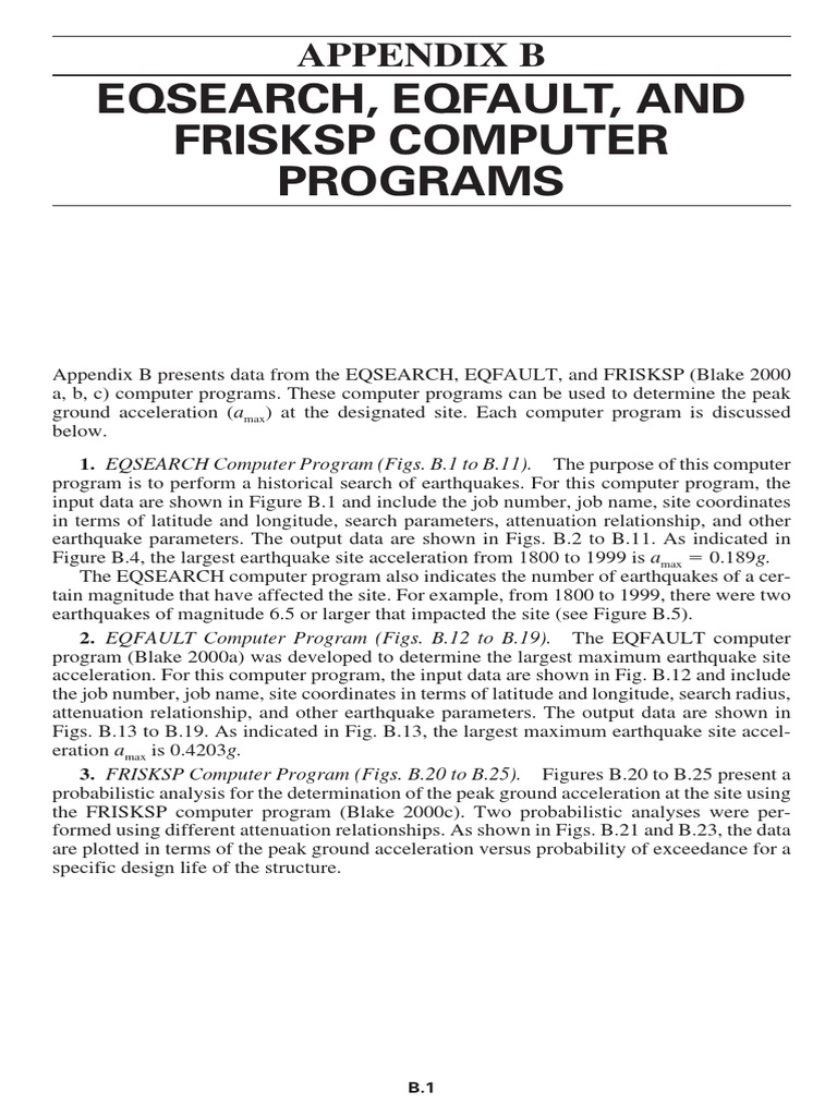 EQSEARCH, EQFAULT, AND FRISKSP COMPUTER PROGRAMS B.25