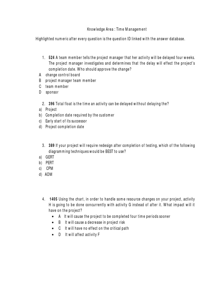 1. 524 A team member tells the project manager that her activity will be delayed four weeks.