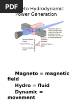 into electric energy without a conventional complex electric generator. The MHD principles had