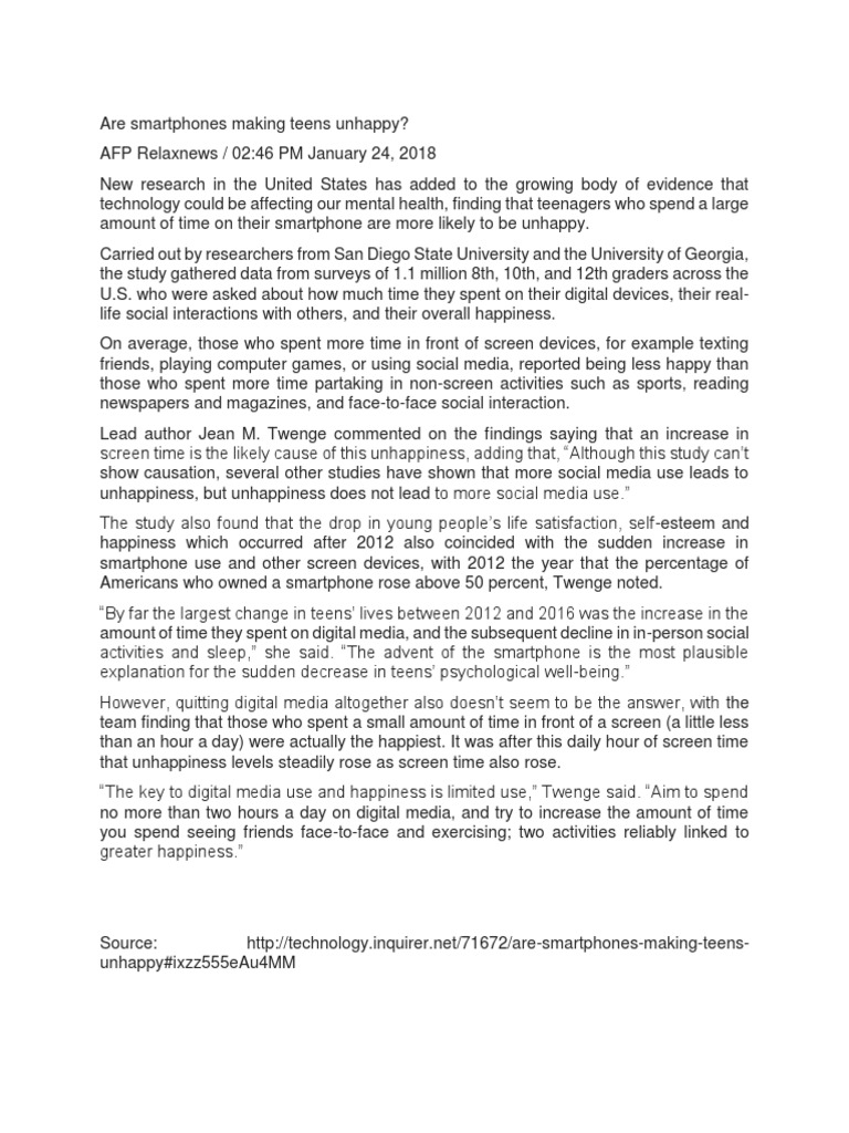 Are smartphones making teens unhappy?