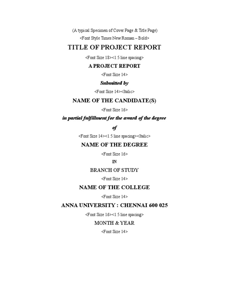 (A typical Specimen of Cover Page & Title Page)