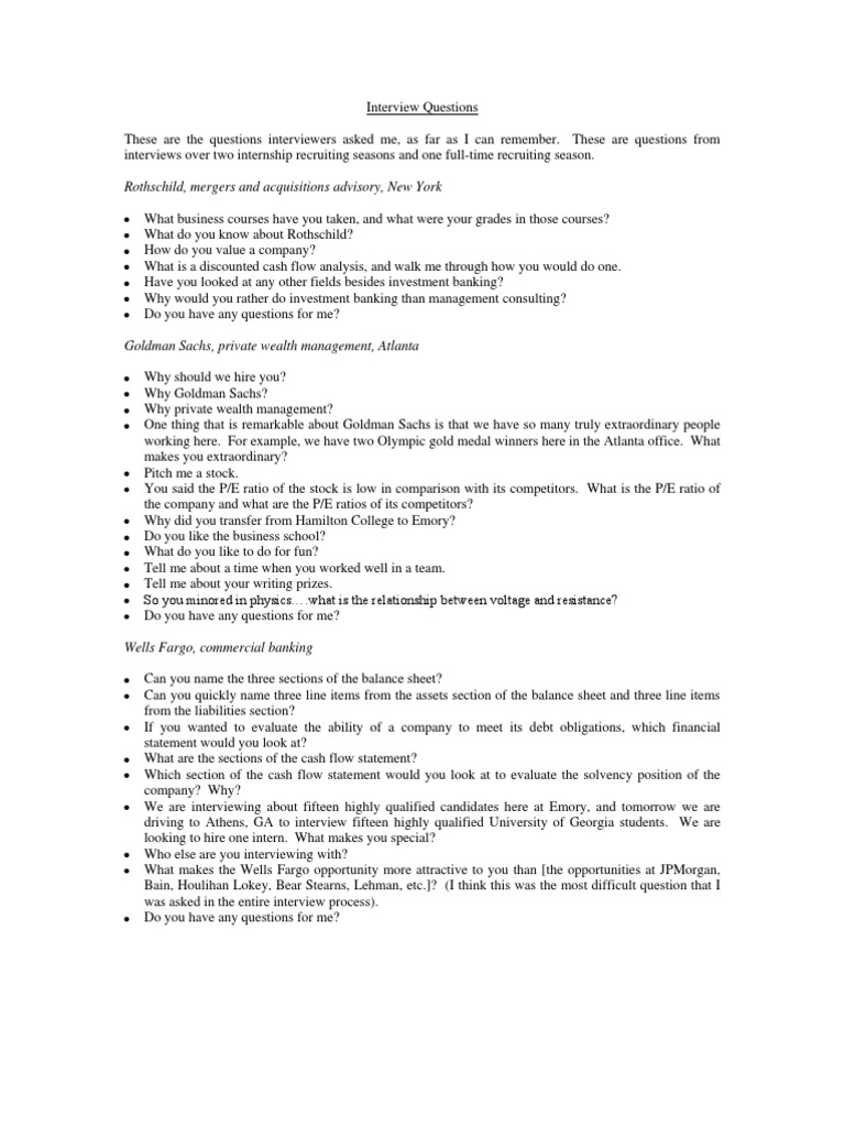 for because I had focused on preparation for investment banking interviews, and I was surprised that I