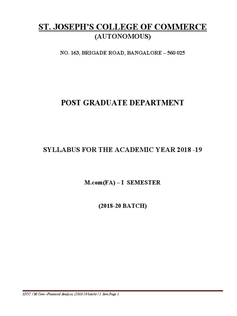 SJCC / M.Com –Financial Analysis (2018-20 batch) / I Sem.Page 1