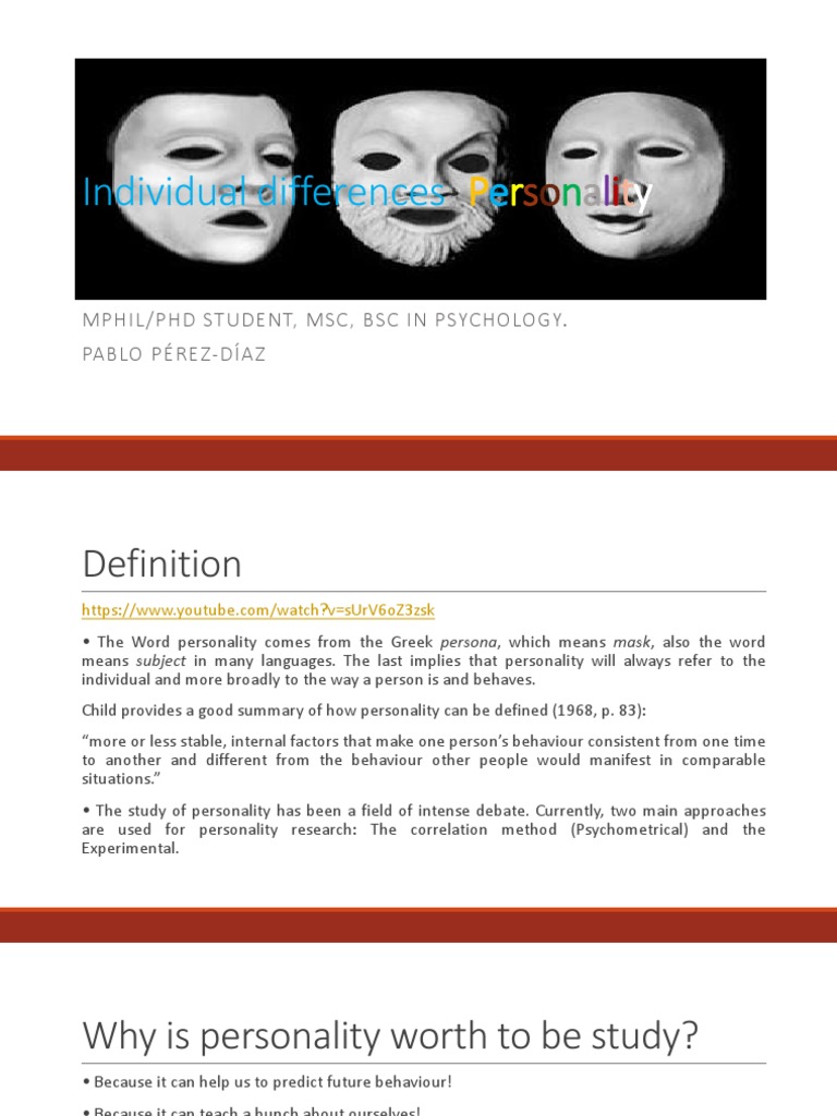 • The Word personality comes from the Greek persona, which means mask, also the word