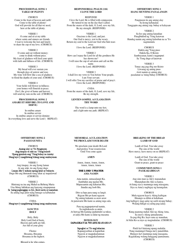 Come to the feast of heaven and earth! I love the Lord, He is filled with compassion. Panginoon ito ang aming alay