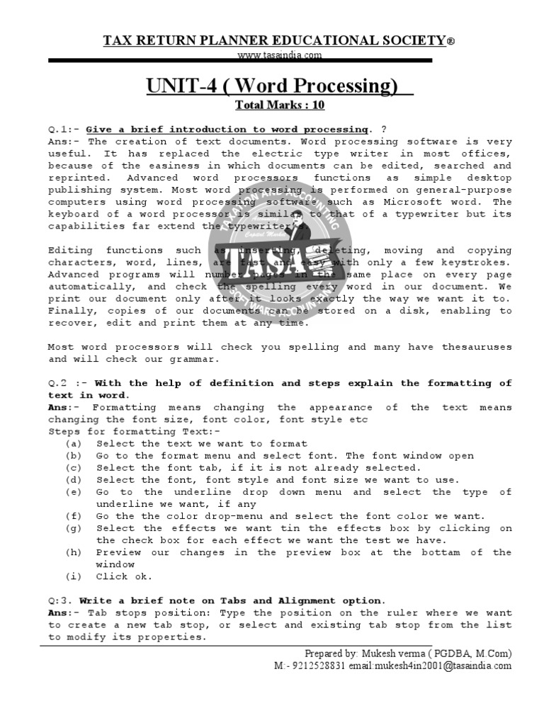 UNIT-4 Word Processing B.com III Computer