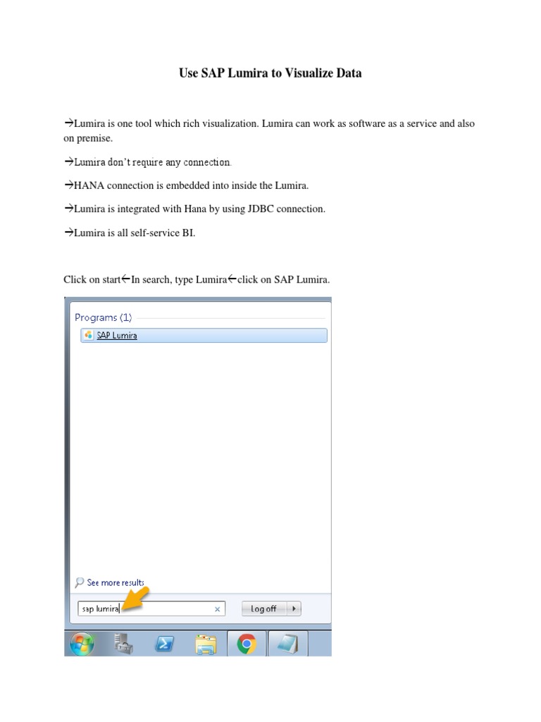 Click on startIn search, type Lumiraclick on SAP Lumira.
