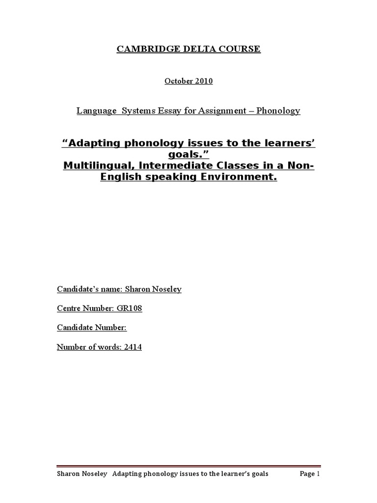 Sharon Noseley Adapting phonology issues to the learner’s goals Page 2