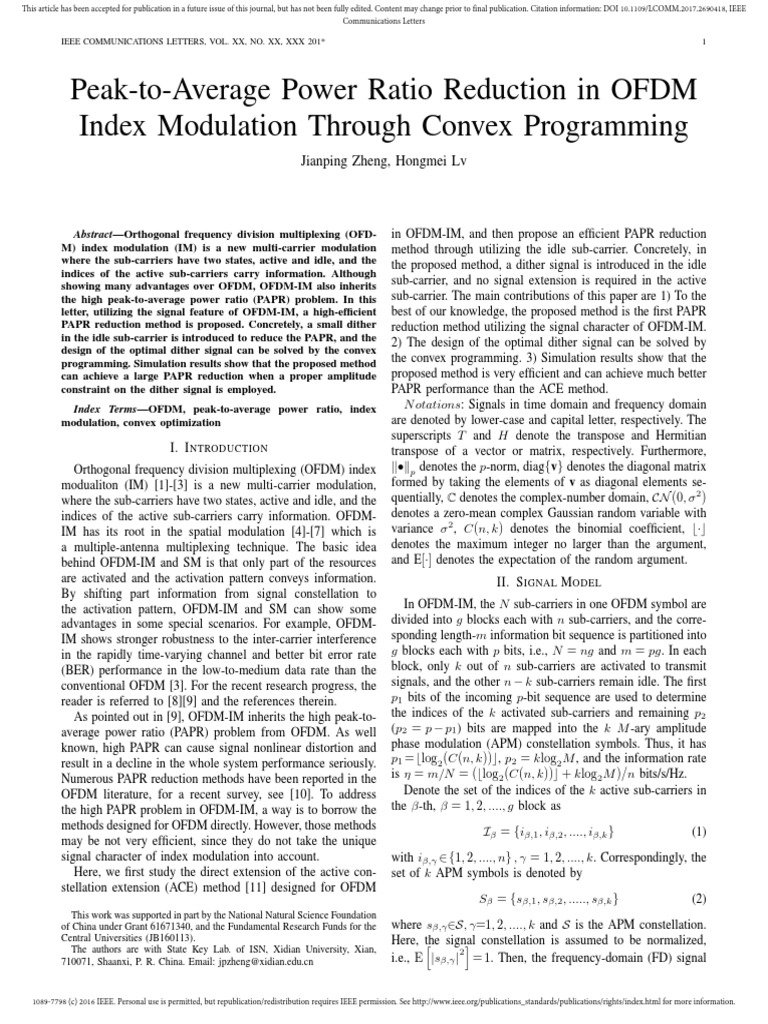method usually attains more than 3 dB PAPR reduction in OFDM: Will it work?”, IEEE Access,vol. 4, pp. 2580-2593, June 2016.