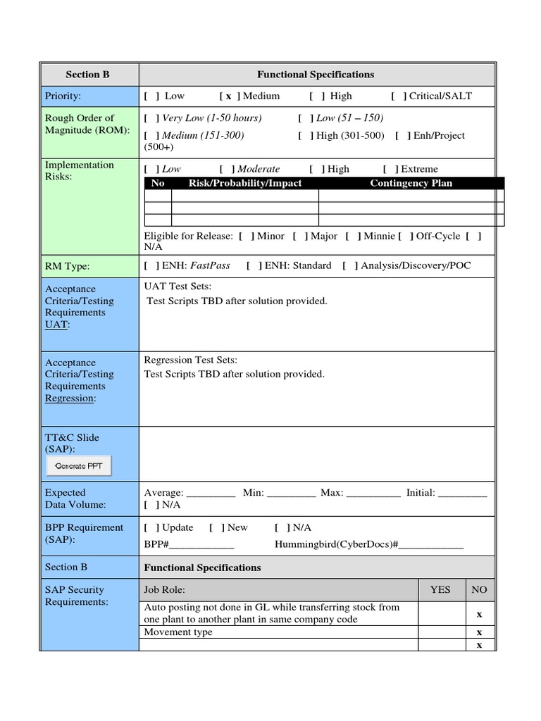 BPP Requirement [ ] Update [ ] New [ ] N/A