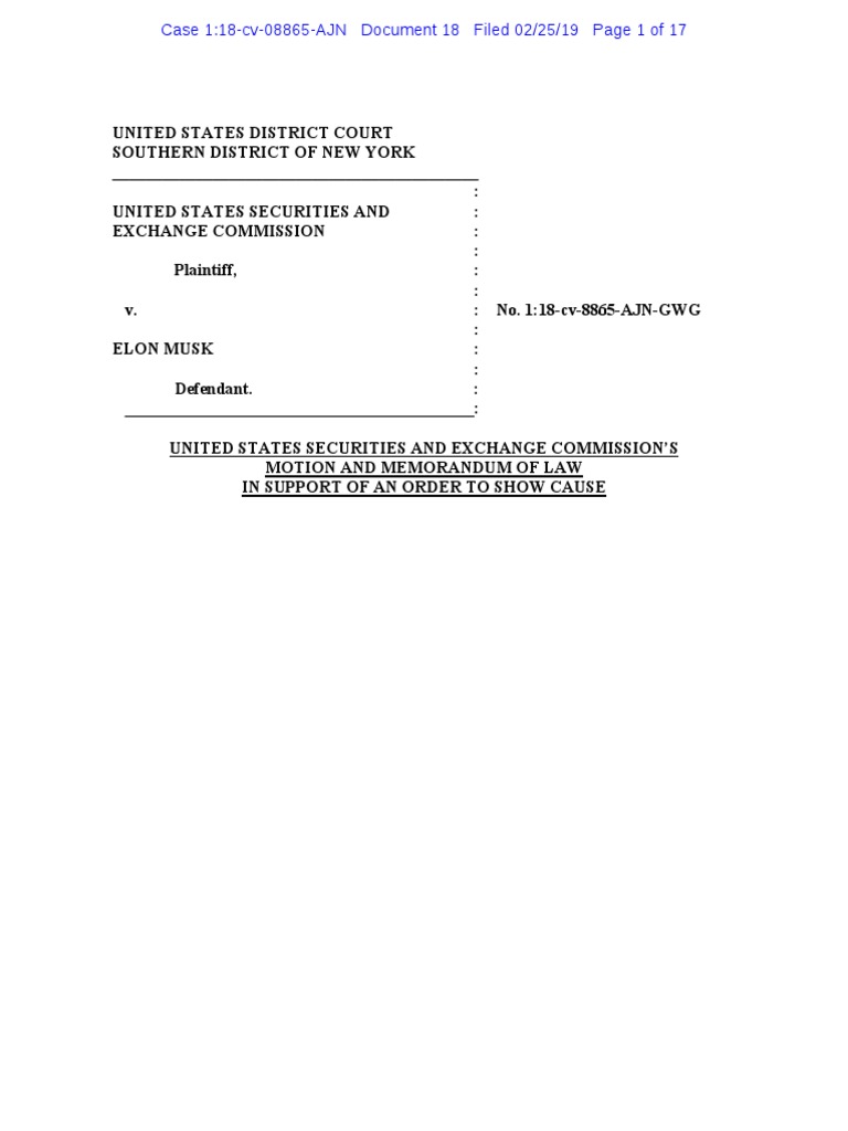 Exchange Commission for an Order to show cause why Defendant Elon Musk should not