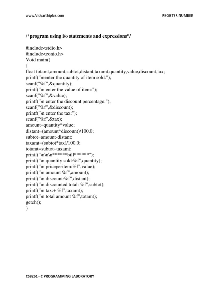 CS8261 - C PROGRAMMING LABORATORY