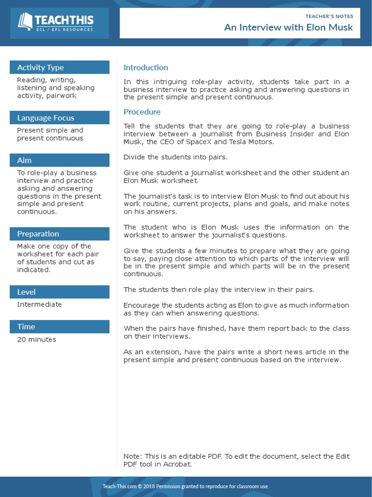 interview and practice Elon Musk worksheet.