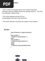 A general syntax of how switch-case is implemented in a ‘C’ program is as