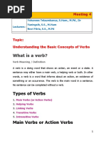 2) The types of verb (transitive and intransitive, auxiliary verb, linking verb,