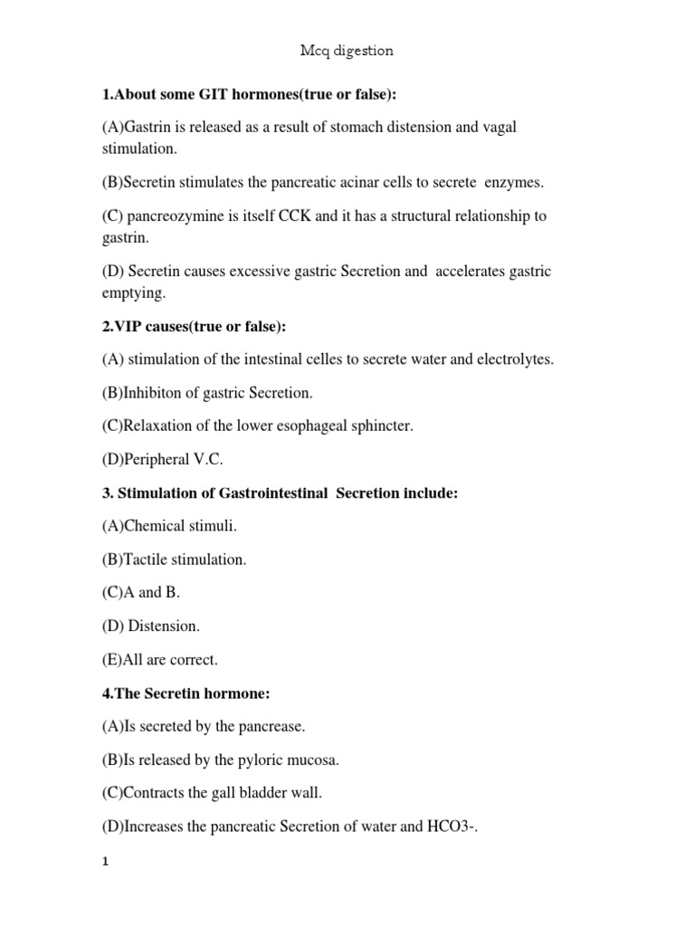 (A)CCK and Secretin Increase both gastric Secretion and motility.