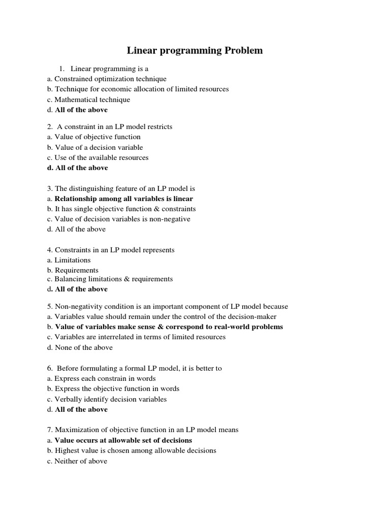 1. Linear programming is a