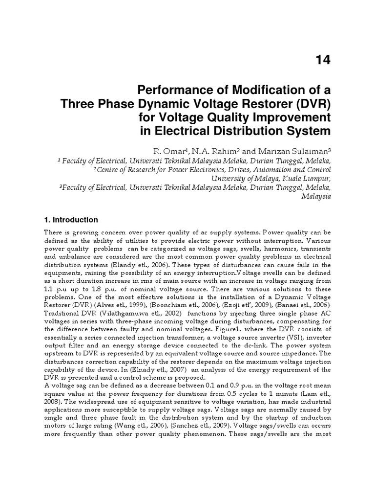 for Voltage Quality Improvement in Electrical Distribution System 321