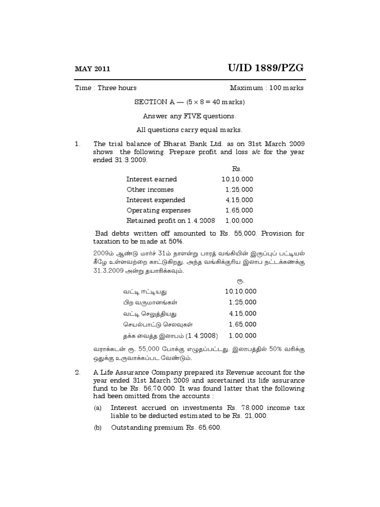 1. The trial balance of Bharat Bank Ltd. as on 31st March 2009