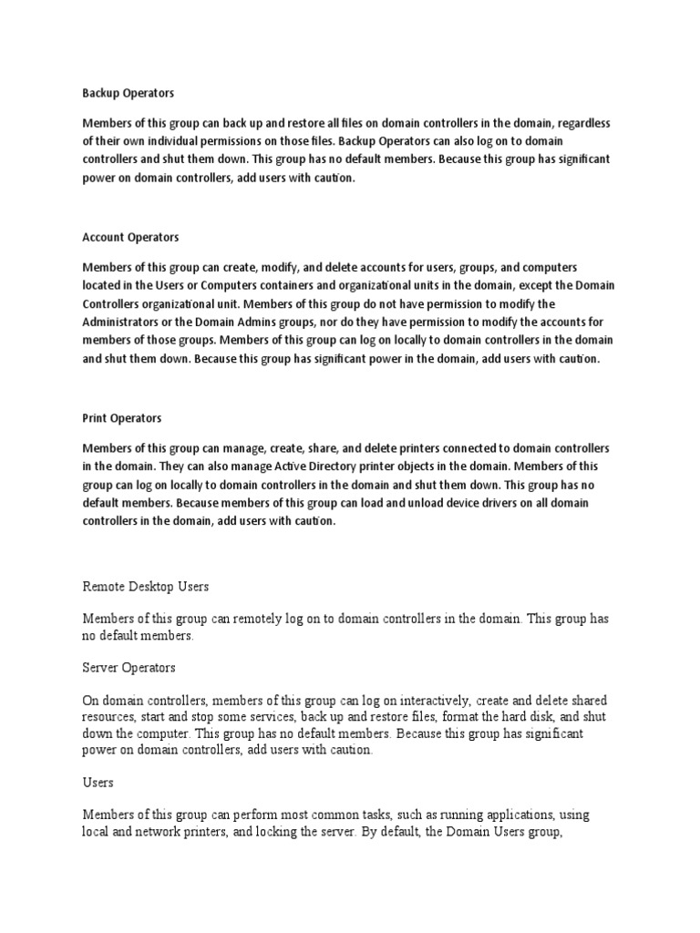 of their own individual permissions on those files. Backup Operators can also log on to domain