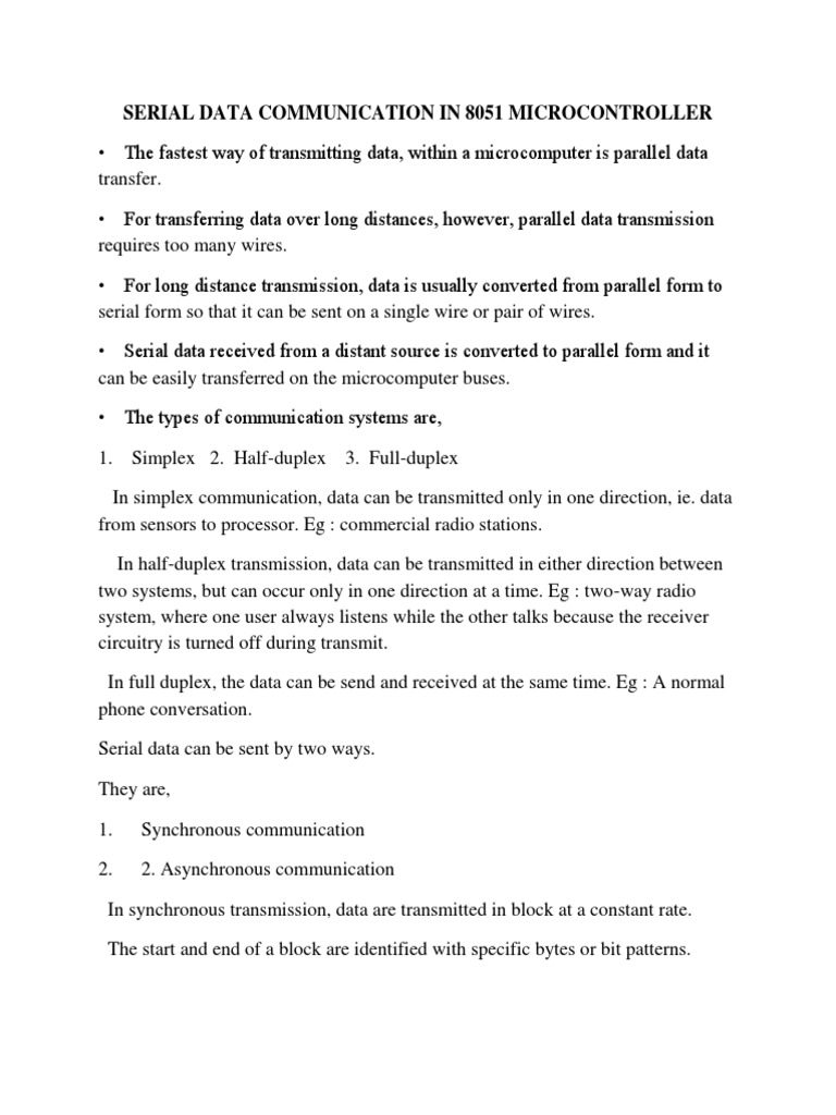 SERIAL DATA COMMUNICATION IN 8051 MICROCONTROLLER