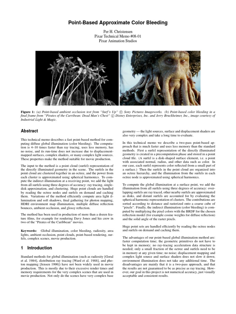 adopted for use in movie production at Sony, ILM, and elsewhere. pute single-bounce color bleeding. The use of 2D textures re-