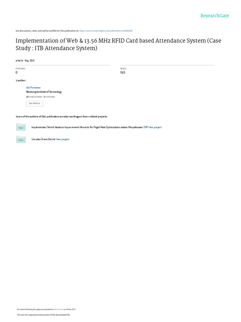 RFID card owned by ITB academic community. Among this system, all source code used in this paper is freely