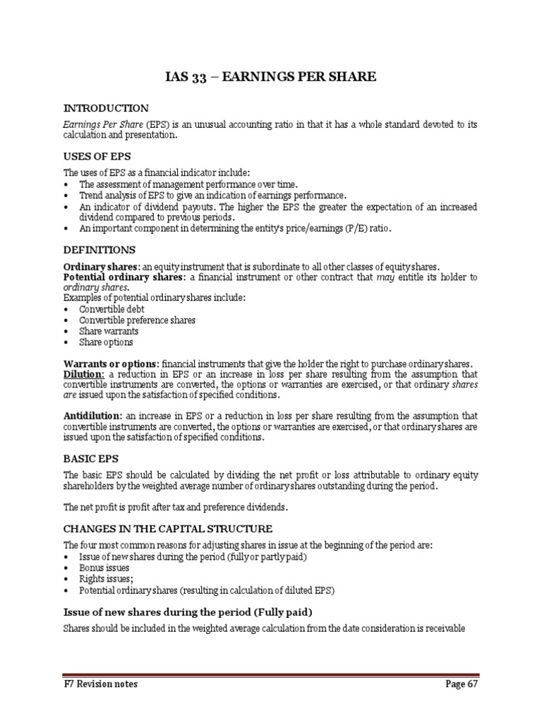 Earnings Per Share (EPS) is an unusual accounting ratio in that it has a whole standard devoted to its