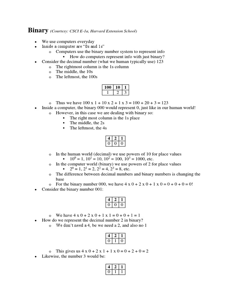 Binary (Courtesy: CSCI E-1a, Harvard Extension School)