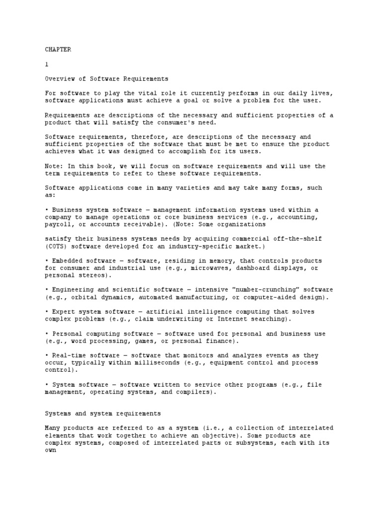 Note: In this book, we will focus on software requirements and will use the