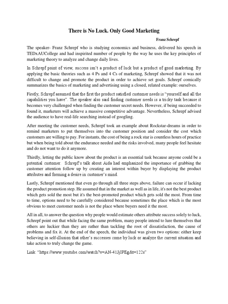 In Schrepf point of view, success isn’t a product of luck but a product of good marketing. By