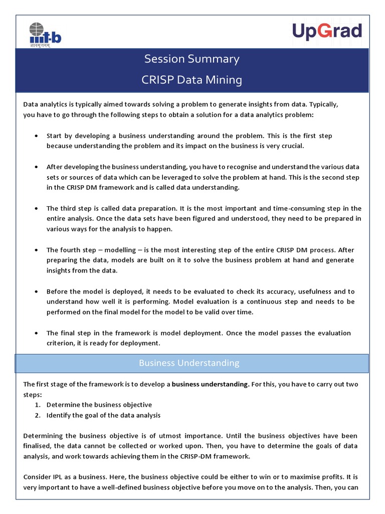 is that CRISP-DM is an iterative process. For example, your data understanding can enhance your business