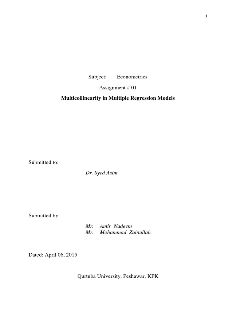 multicollinearity the ordinary least squares estimators are imprecisely estimated. If the goal