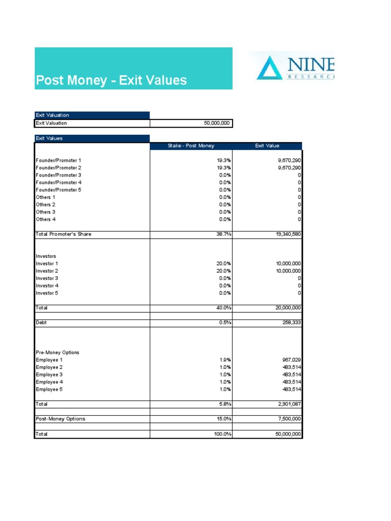 Post Money Valuation 10,000,000 10,000,000 10,000,000