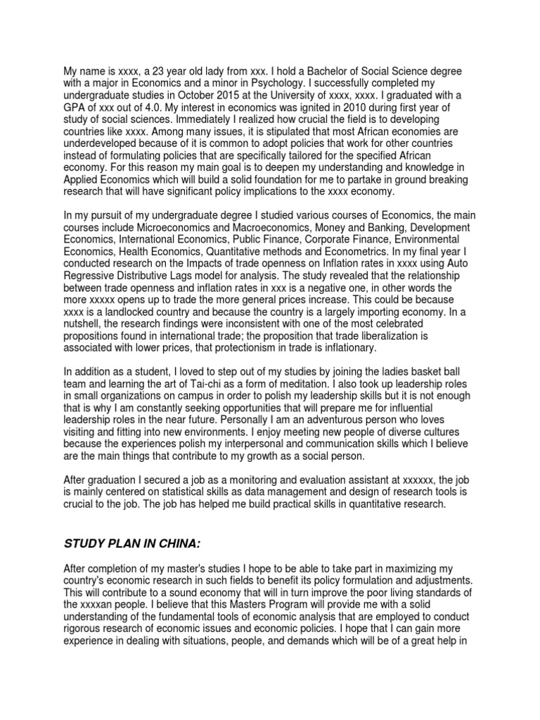 study and research in Applied Economics. China will provide me an opportunity to meet