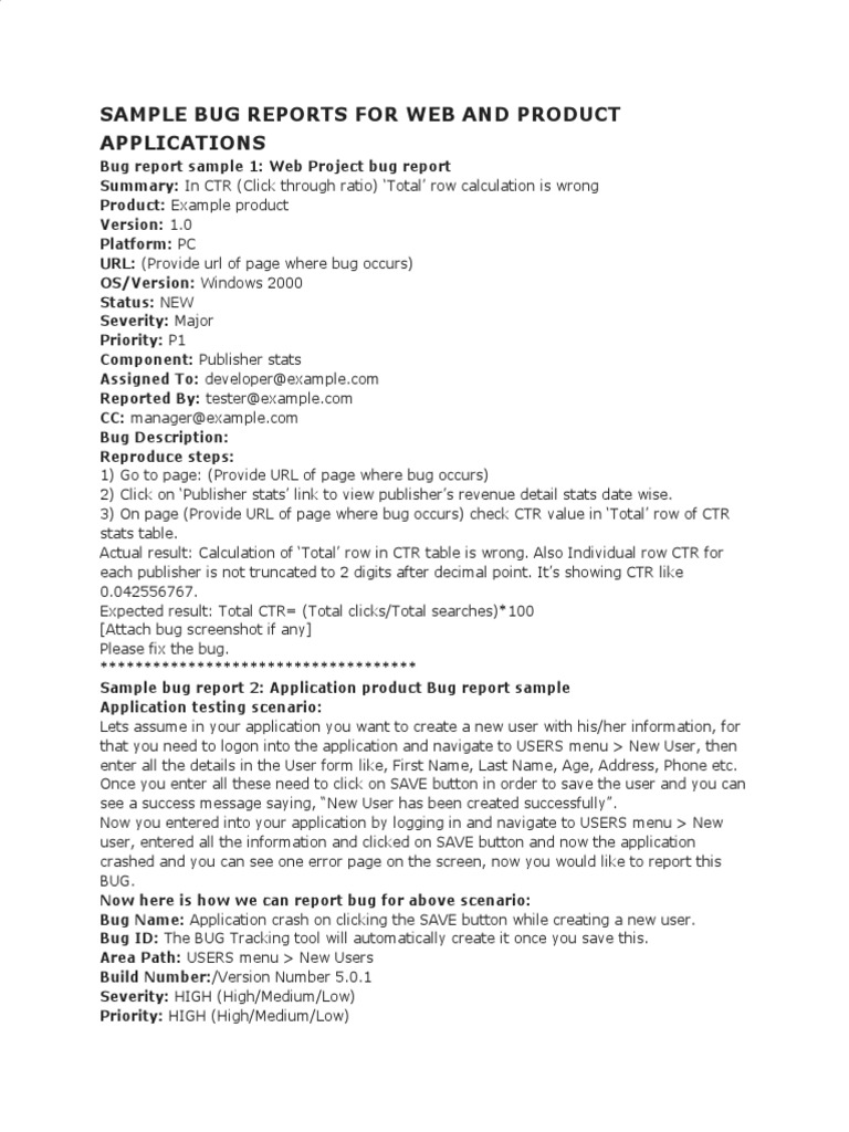 SAMPLE BUG REPORTS FOR WEB AND PRODUCT