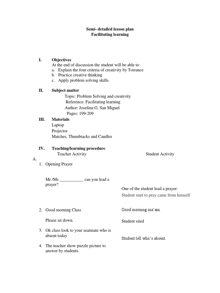 Semi- detailed lesson plan