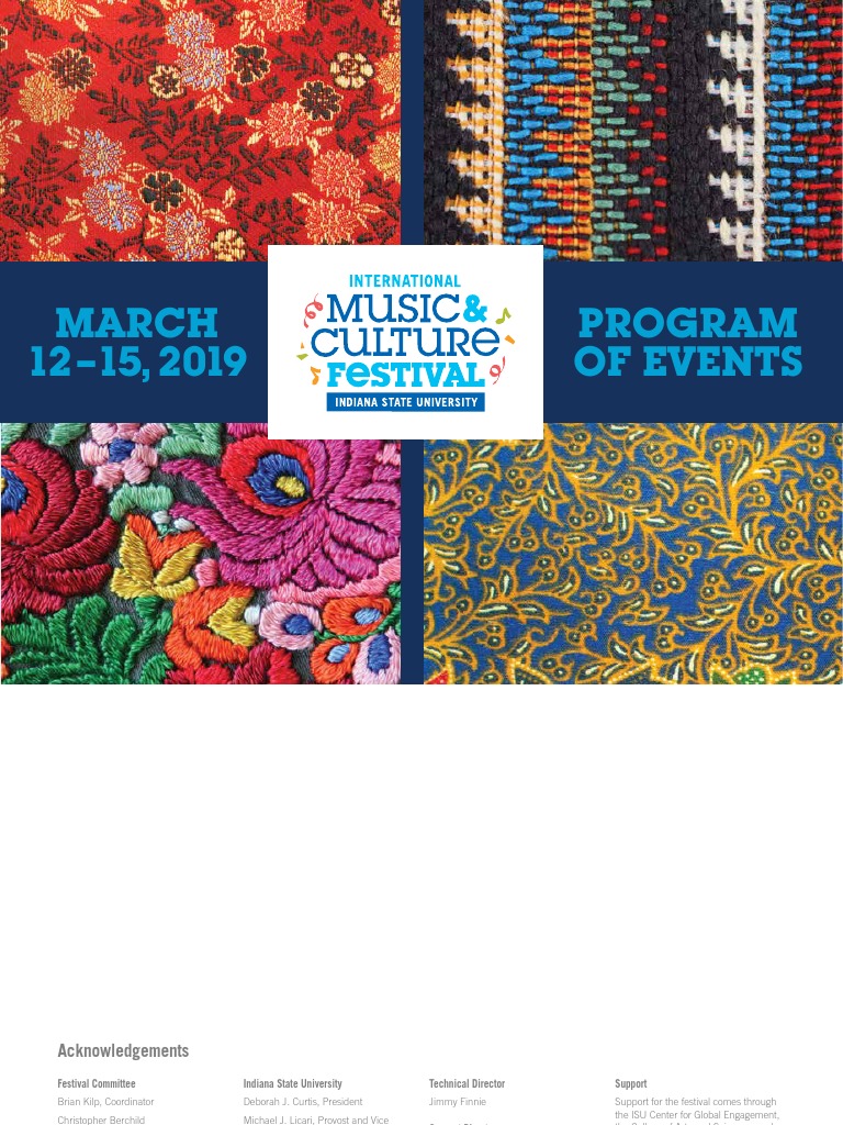 The Indiana State University Music and Culture Festival Also featured will be student and faculty presenters from