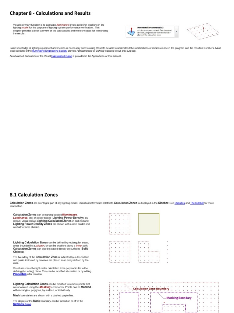 the Calculation Zone. See Lighting Metrics for discussion of different metrics.