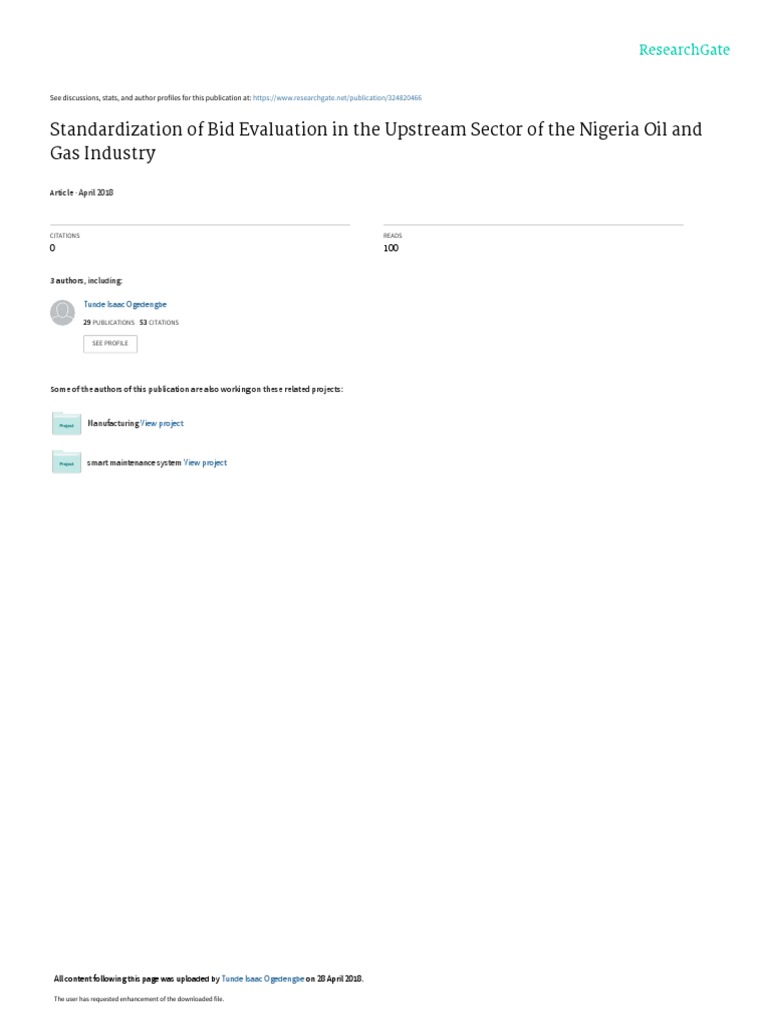 Standardization of Bid Evaluation in the Upstream Sector of the Nigeria Oil and