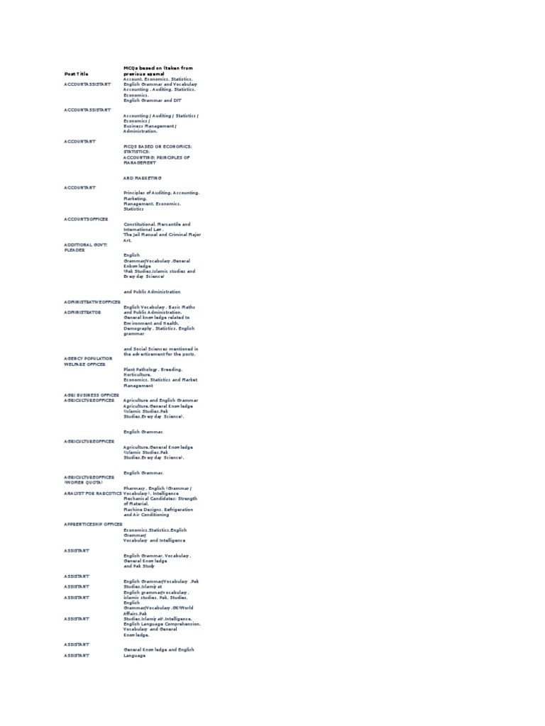 ASSISTANT Studies,Islamiyat),Intelligence.