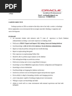 ✓ Experience in handling the gap resolution in primary and DR by using incremental backup. ✓ Managing Standby