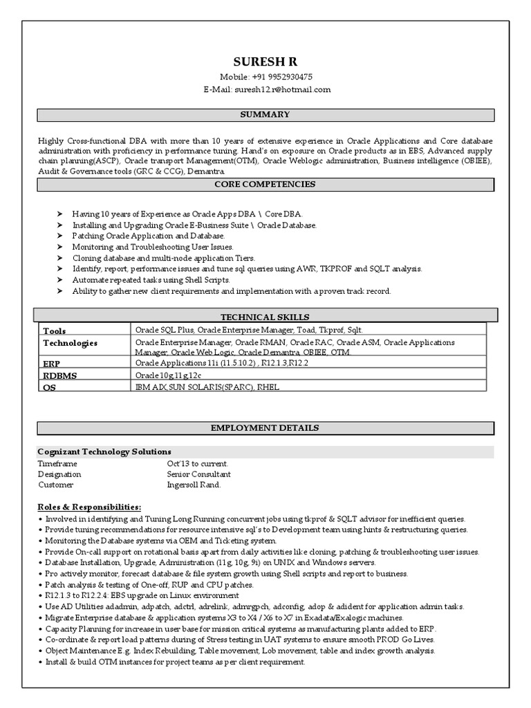 administration with proficiency in performance tuning. Hand's on exposure on Oracle products as in EBS, Advanced supply