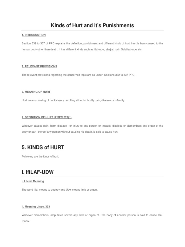 Kinds of Hurt and it's Punishments