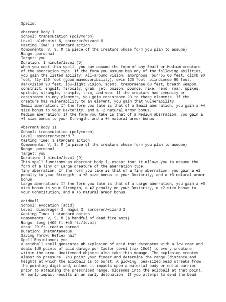 This spell functions as aberrant body I, except that it allows you to assume the