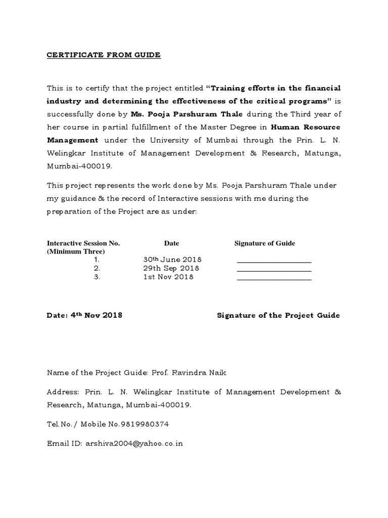 CERTIFICATE FROM GUIDE