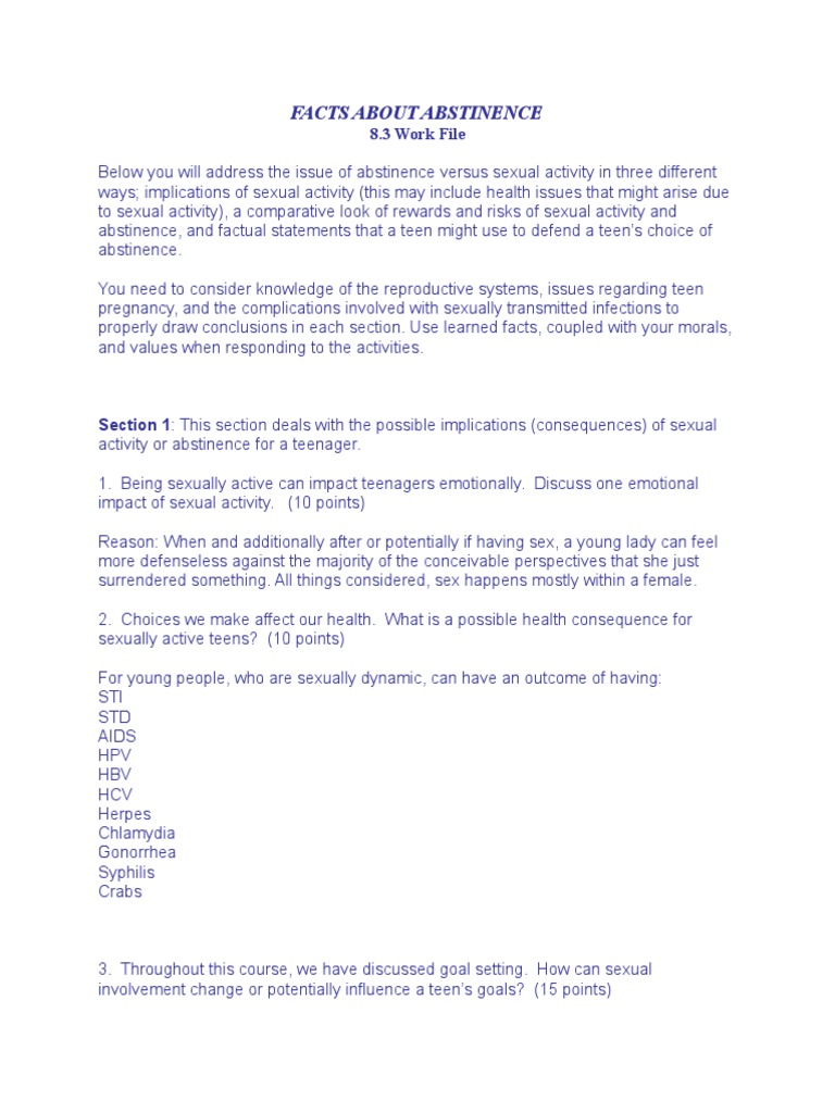 Below you will address the issue of abstinence versus sexual activity in three different
