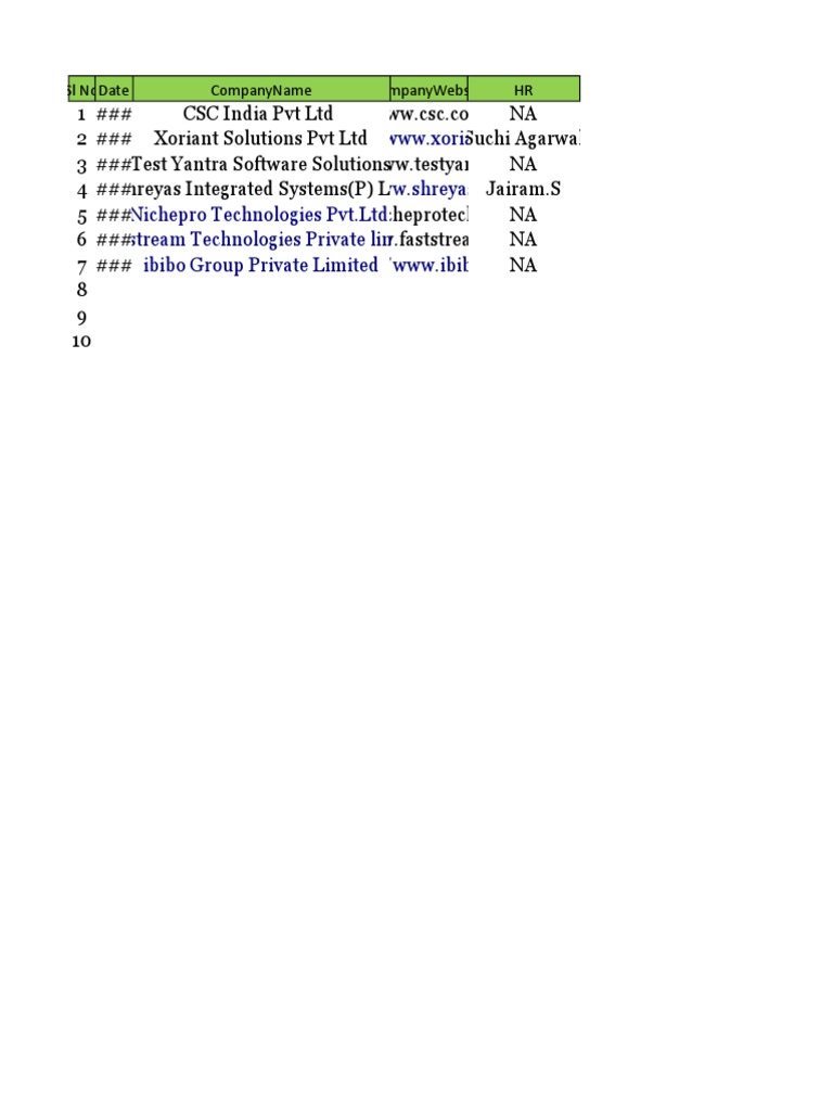 Sl NoDate      CompanyName       CompanyWebsite   HR