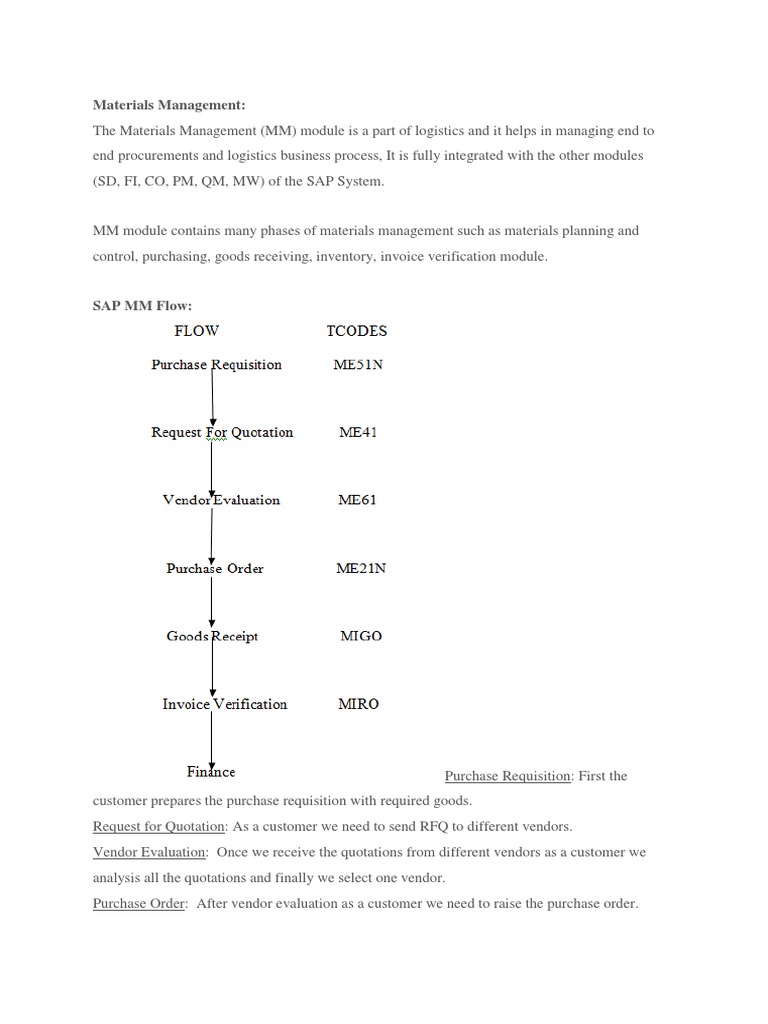 The Materials Management (MM) module is a part of logistics and it helps in managing end to