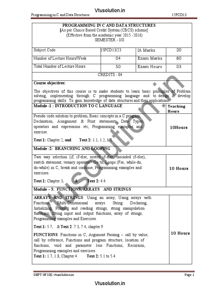 Programming in C Data Structures (15pcd13) - Notes PDF